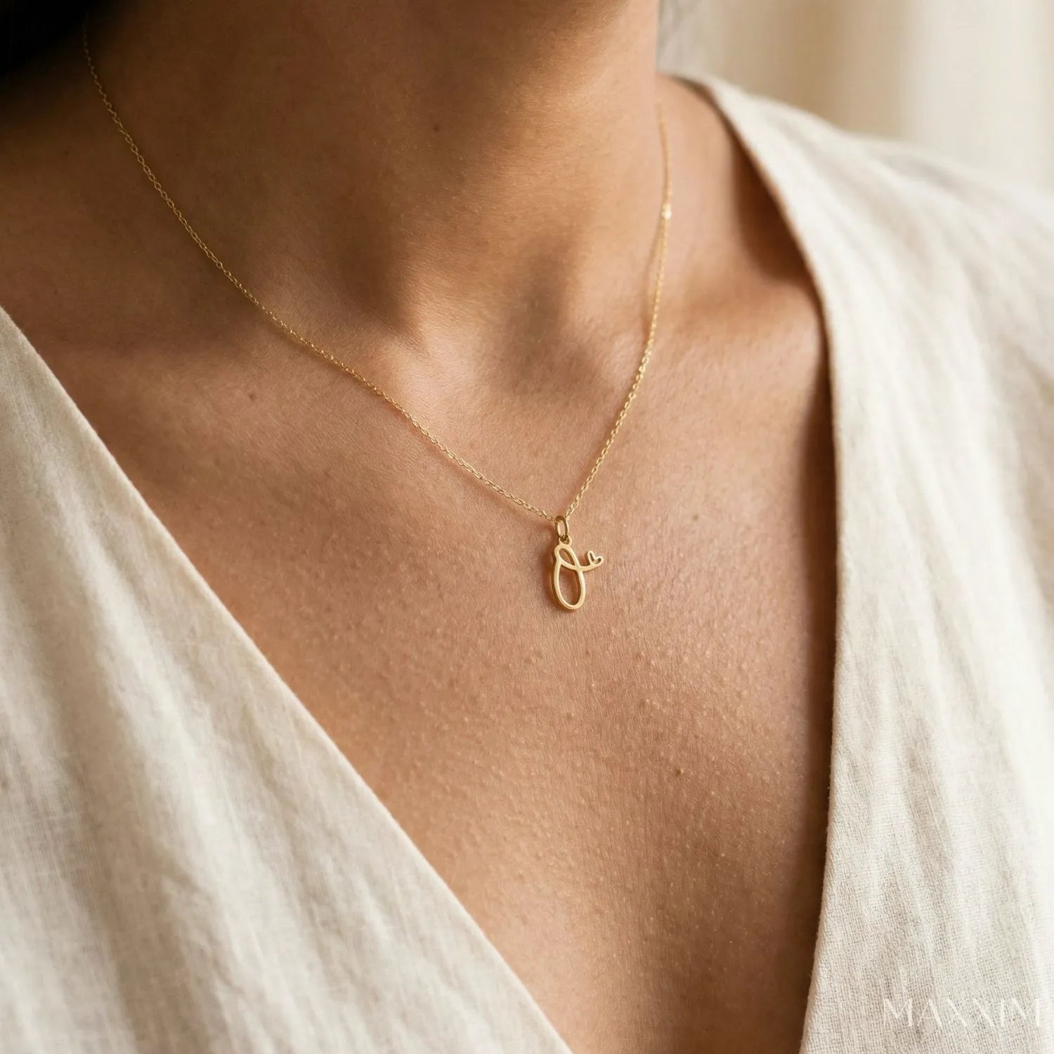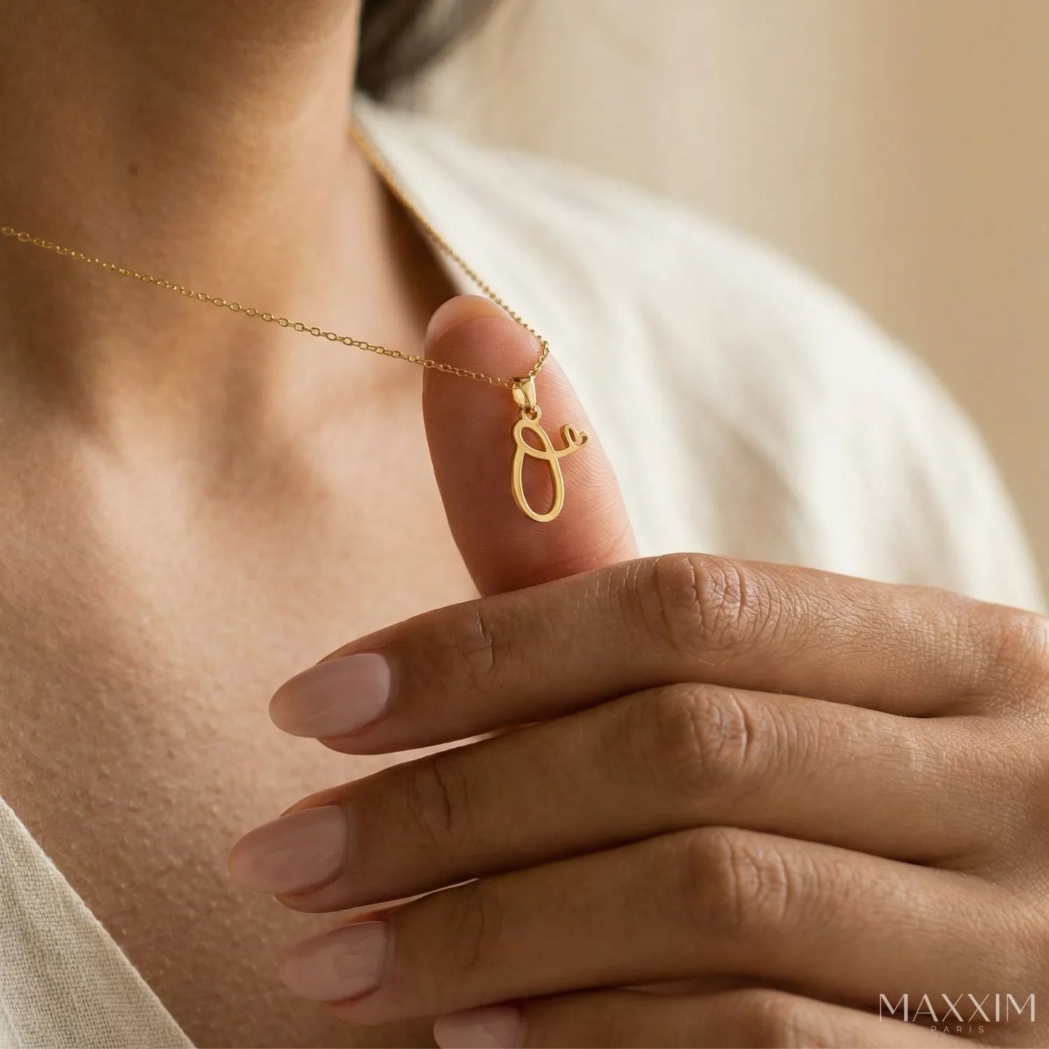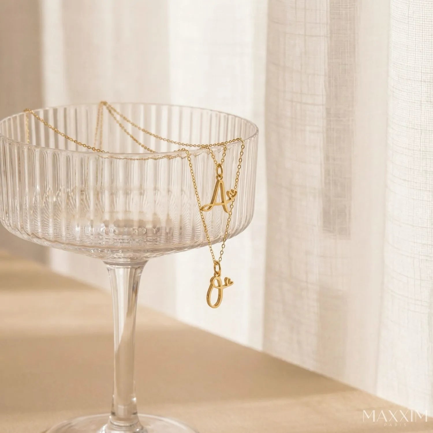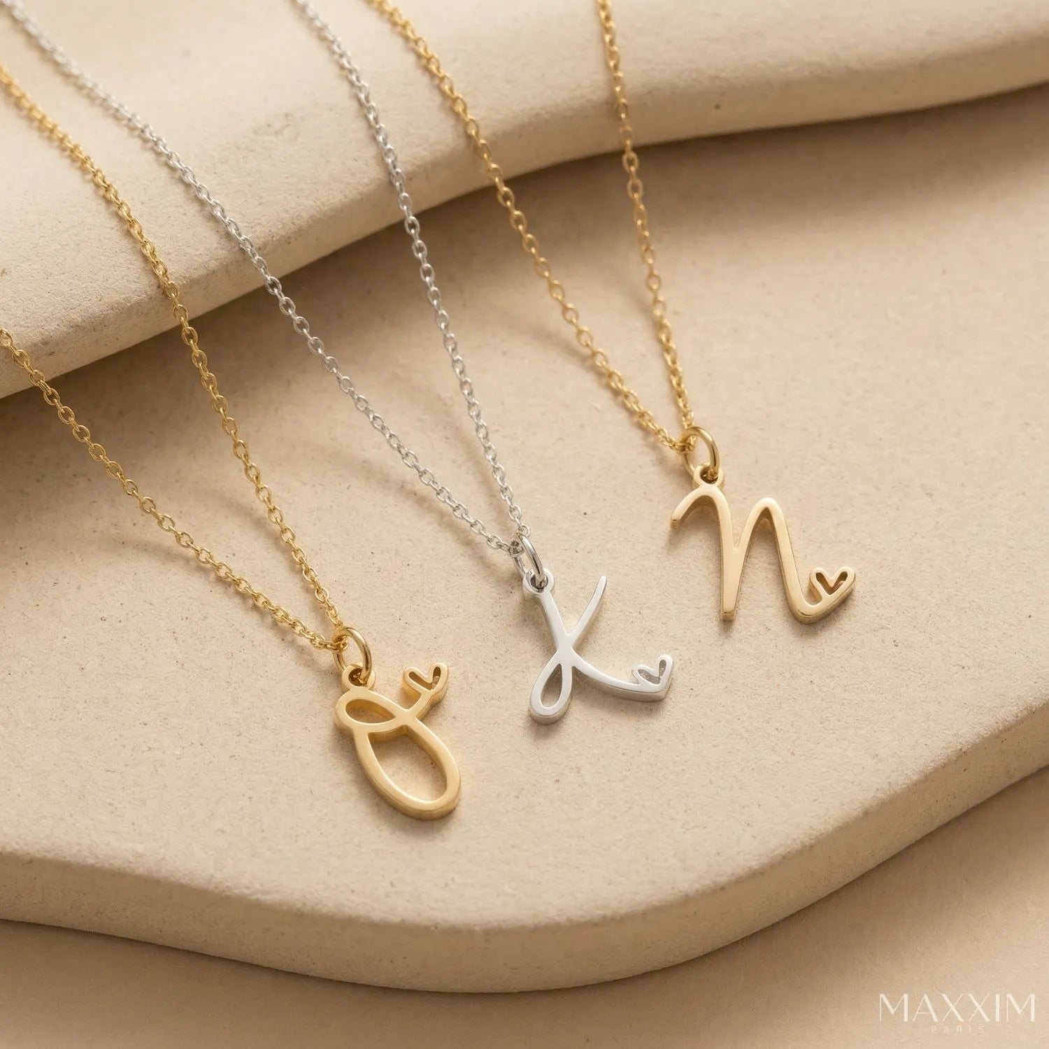 MARISE – en raffineret halskæde med et initial og et lille hjerte. Bær altid bogstavet fra en kær tæt på dig. Fås i guld og sølv.
