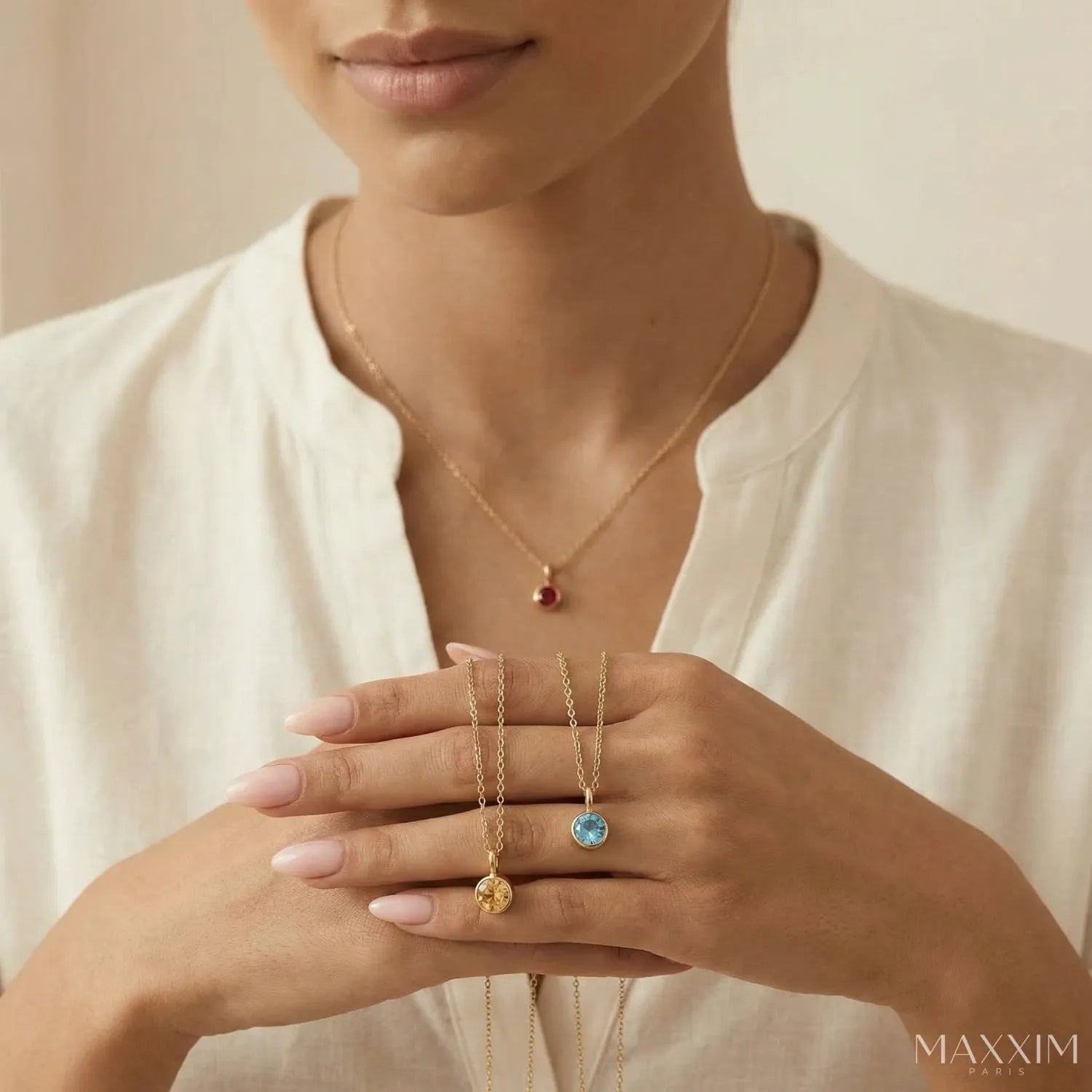 Ontdek ESSENZA, onze gepersonaliseerde geboortesteen ketting. Kies uit goud of zilver en voeg een gekleurde steen toe voor een unieke touch.