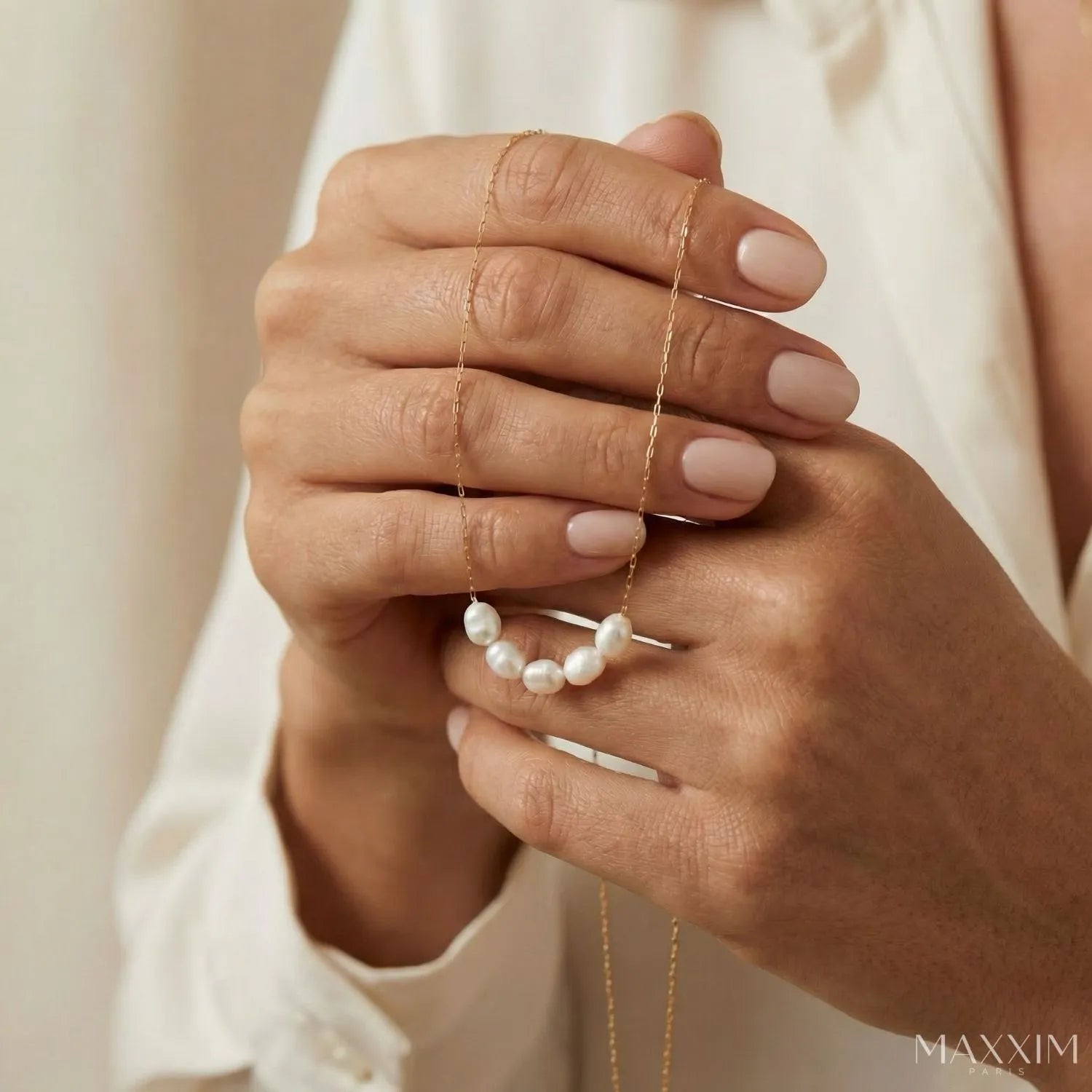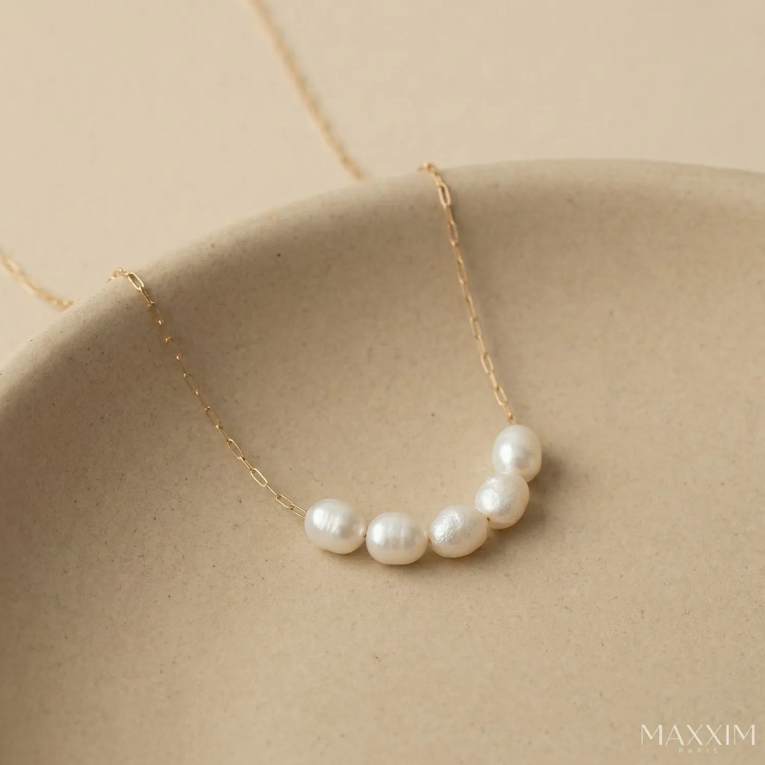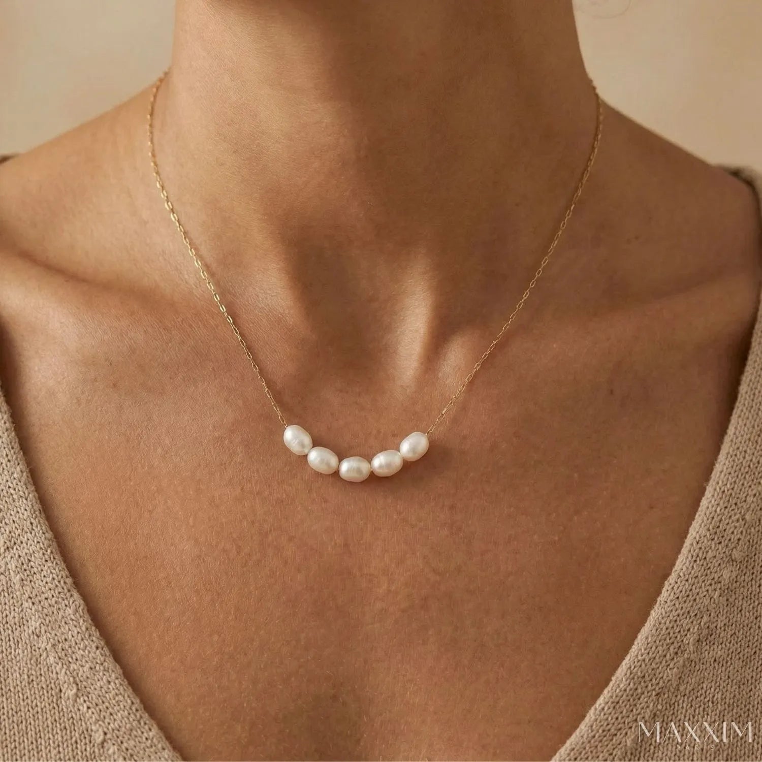 Stijlvol en subtiel, deze ketting is een echte must-have. Kies uit klassiek goud of strak zilver, versierd met vijf echte zoetwater-parels. Perfect voor iedere look!