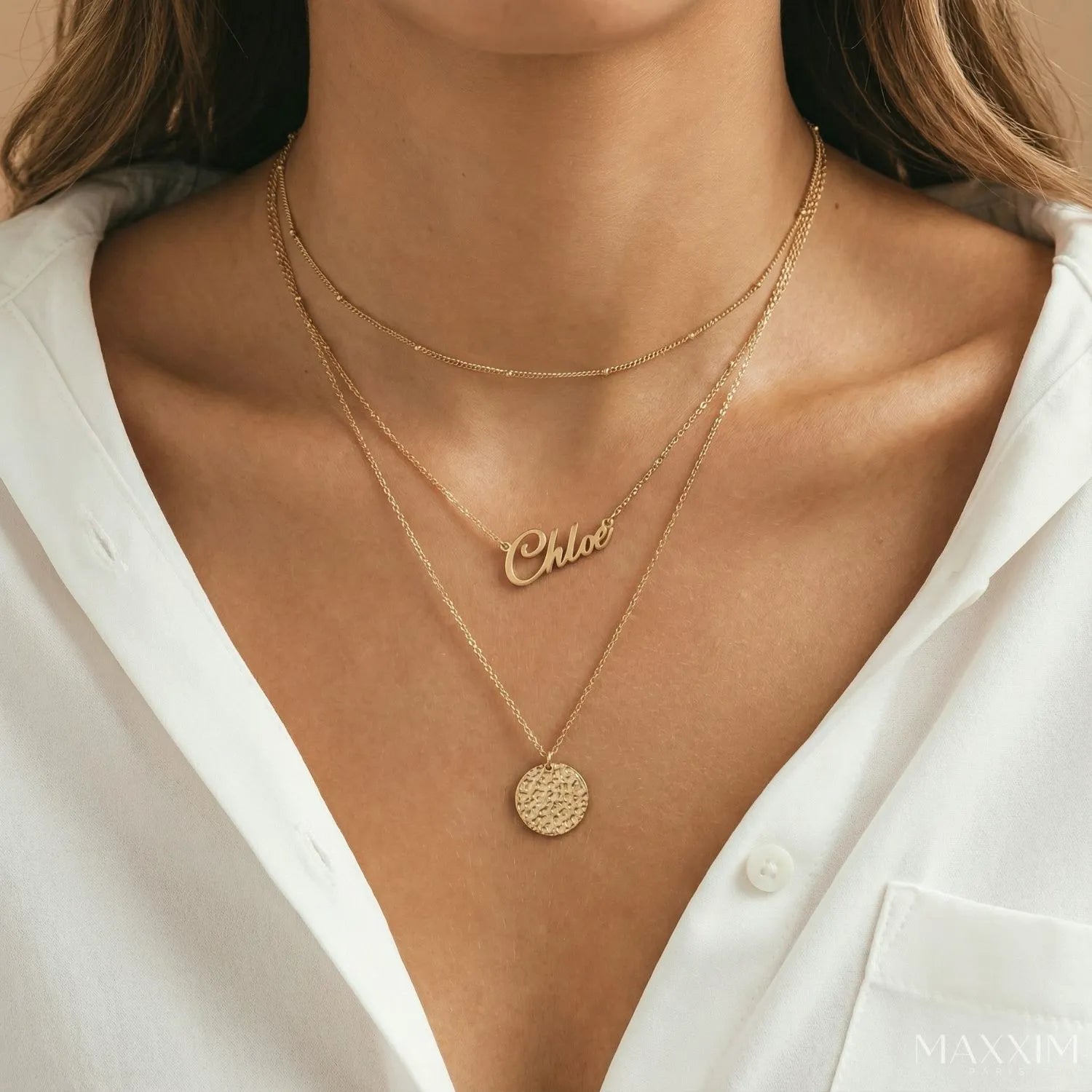 OLIVIA – een 3-delige kettingenset met een subtiele persoonlijke touch. De middelste ketting kan gepersonaliseerd worden met jouw naam, wat zorgt voor een subtiel, maar betekenisvol sieraad.